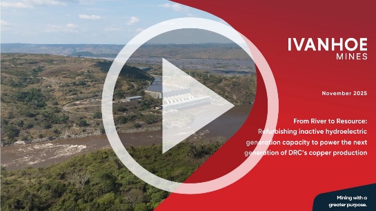 KOLWEZI, REPUBLIQUE DEMOCRATIQUE DU CONGO – Robert Friedland, coprésident exécutif du conseil, et Marna Cloete, présidente et cheffe de la direction d’Ivanhoe Mines (TSX: IVN; OTCQX: IVPAF), ont annoncé aujourd’hui que les premiers 50 mégawatts (MW) d’hydroélectricité propre provenant de la turbine no 5, d’une capacité de 178 MW, récemment remise en état à la centrale Inga II, ont été fournis au complexe d’exploitation du cuivre de Kamoa-Kakula. La fourniture d’hydroélectricité à Kamoa-Kakula depuis Inga II devrait atteindre 100 MW au cours du premier trimestre de 2026, puis s’accroître encore jusqu’à 150 MW avec la réalisation de travaux d’amélioration du réseau électrique national.